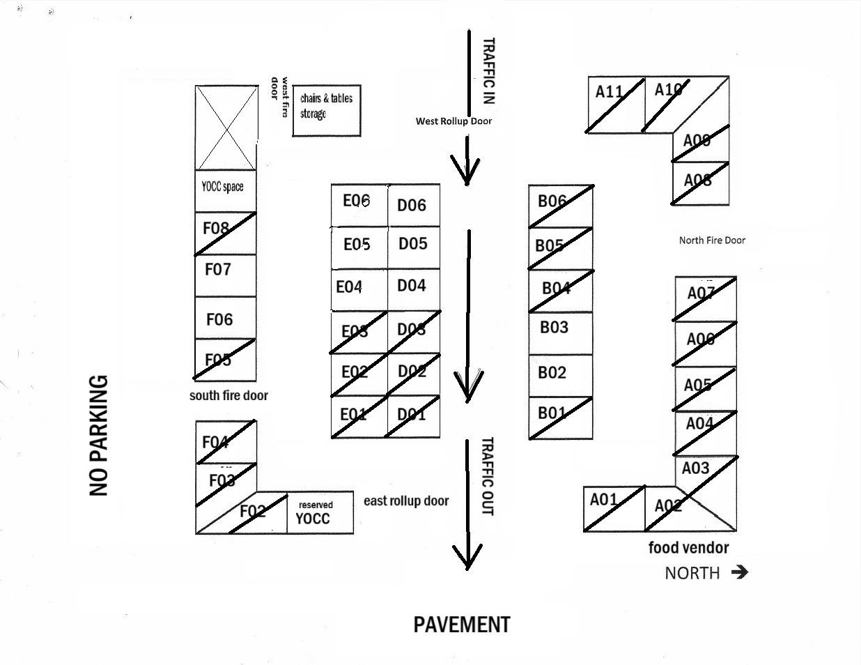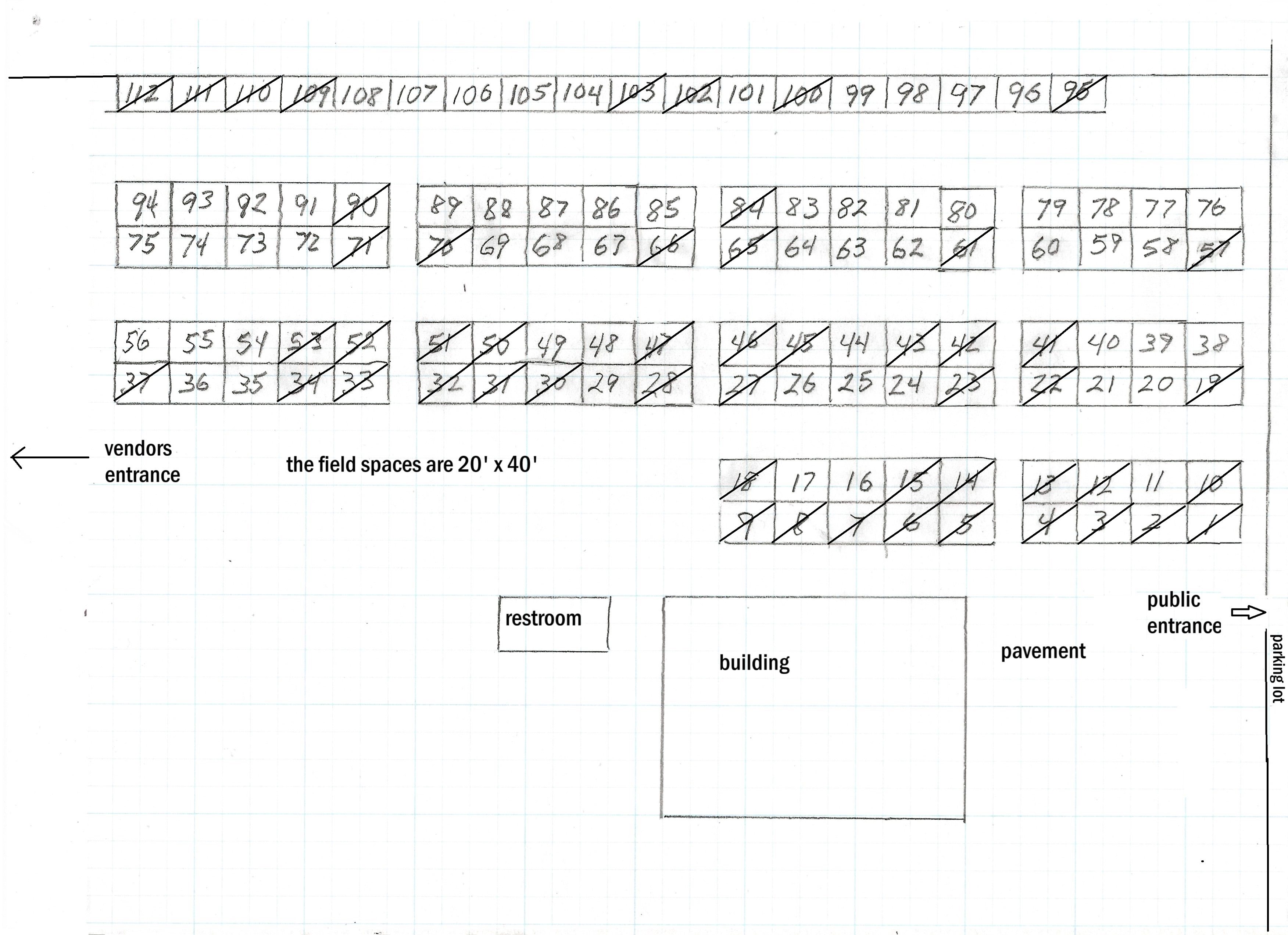 Large site maps will be at the registration tables showing taken and available spaces during the days of the Swap Meet.