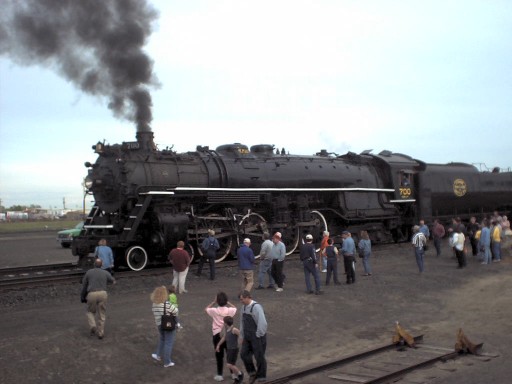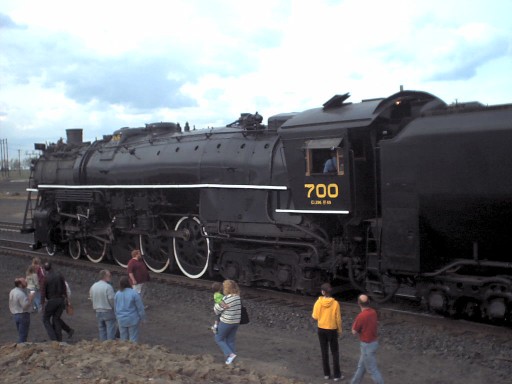 The recently restored 700 with full compliment of passenger cars traveled through Pasco in April 2001.